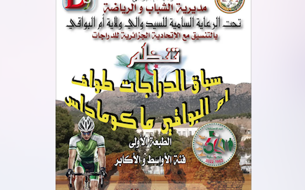 أعلنت الإتحادية الجزائرية للدراجات عبر موقعها الرسمي عن تنظيم سباق الدراجات أم البواقي ماكوماداس في طبعته الأولى لفئتي الأواسط والأكابر وذلك في الفترة الممتدة في الفترة الممتدة ما بين 17 و18 فيفري، بمناسبة يوم الشهيد المصادف ل 18 فيفري من كل سنة.