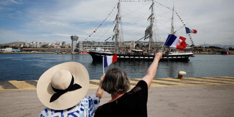 وحتى مغادرة ميناء بيرايوس، كانت السفينة الفرنسية المصنفة كنصب تذكاري تاريخي، مصحوبة بـ25 مركبًا شراعيًا آخر وكذلك سفينة “أوليمبياس” ثلاثية المجاديف (نوع من السفن القديمة اخترعت في القرن السابع قبل الميلاد) التابعة للبحرية اليونانية.