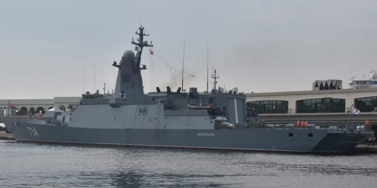 في إطار تجسيد برنامج التعاون العسكري الثنائي الجزائري-الروسي، رست، السفينة الغراب“MERKURIY 734” من الأسطول الروسي للبحر الأسود بميناء الجزائر.
