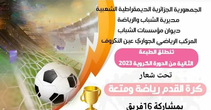 تحت شعار ” كرة القدم رياضة ومتعة ” وبمناسبة الاحتفال بعيدي الاستقلال والشباب ينظم المركب الرياضي الجواري عين النكروف بولاية تلمسان دورة رياضية في كرة القدم في طبعتها الثانية، بحيث ستعرف الدورة مشاركة 16 فريقا يمثلون عدة فرق من مختلف أحياء بلديات الولاية وما جاورها.