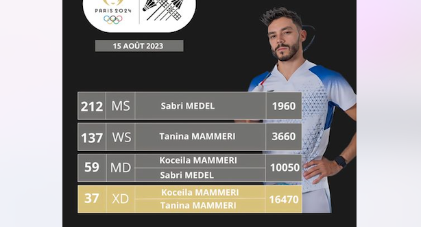 يتواجد الثنائي الجزائري كسيلة معمري و تنينة معمري دائما في دائرة التأهل إلى دورة الألعاب الأولمبية في الزوجي مختلط أين يحتل الثنائي الجزائري المركز 37 برصيد 16470 نقطة