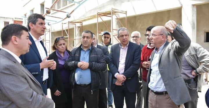 ، التكثيف من ساعات العمل 3×8 من أجل التقدم في نسبة الاشغال، وتحديد مدة 18 شهرا لتسليم المسبح، كما قام الوالي في المحطة الثانية من الزيارة بمعاينة المنشآت الرياضية وسير أشغالها ببلدية هراوة تمثلت في مشروع اعادة تهيئة الملعب البلدي المسمى بالشهيد عبد الوهاب العربي، الذي انتهت به عمليات اعادة التهيئة، بعدما تم تهيئة الملعب بمدرجات بطاقة استيعاب مقدرة ب 1000 مقعد، وتهيئة الأرضية بالعشب الاصطناعي وكذا تهيئة غرف الملابس و الحكام، وقد استمع الوالي لانشغالات الجمعيات الرياضية ووعد بتسوية الوضعية وايجاد الحلول الكفيلة من أجل تمكين الفريق من اللعب على أرضية ميدانه ، ليتنقل الوالي بعدها إلى المسبح النصف الأولمبي ببلدية هراوة ، الذي عرف توقف الأشغال منذ سنوات، لتنطلق أشغال الإنجاز هذا الأسبوع بعد رفع العراقيل، هذا وستتولى شركة “كوسيدار” بعث المشروع ومواصلة الأشغال.
